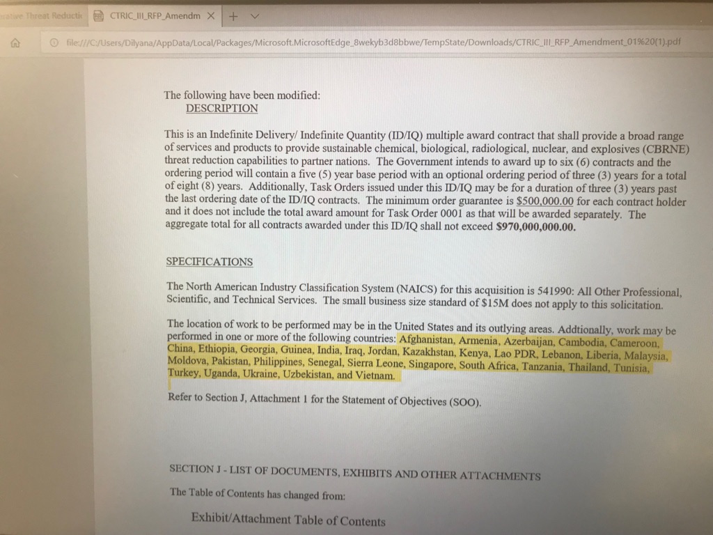 Index of /Biological Weapons/Georgia. MoH. Lugar Research Center/2018/Secret Documents/Foreign Companies and Individuals Involved in Biological Weapons/DTRA/Contracts 06-2018