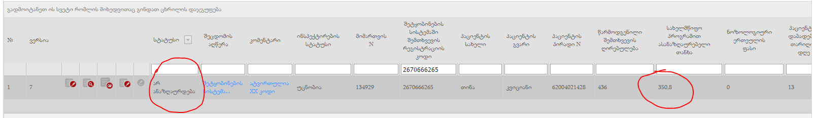 შევცვალე სტატუსიც და თანხაც შეცდომა არ ამოუგდია.