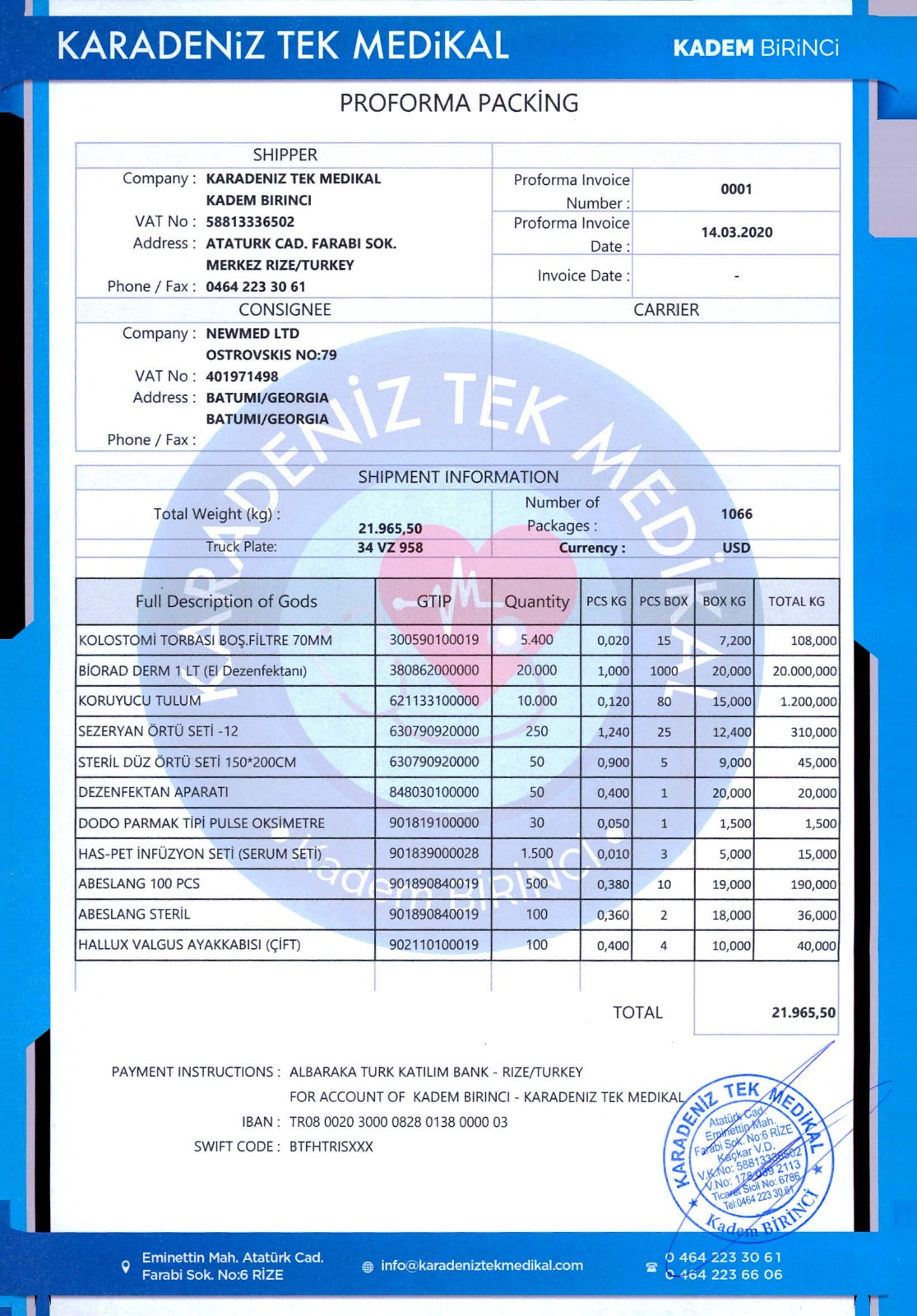 გიგზავნით სადეზინფექციო საშუალებების დოზატორების მანქანის ტვირთის მონაცემებს. მანქანაში დოზატორების გარდა არის სხვა ტვირთიც. გარდა ამისა, გიგზავნით საკონტაქტო პირის მონაცემებს, რომელიც