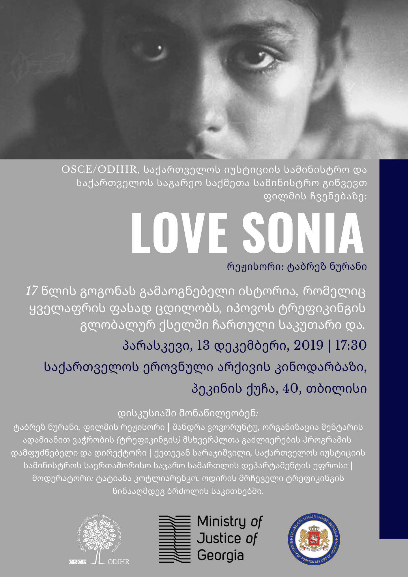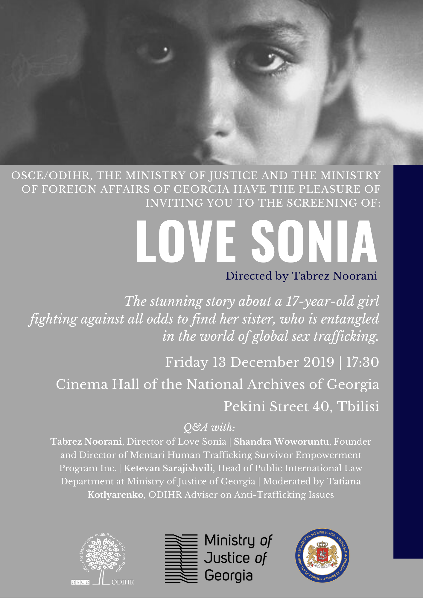OSCE/ODIHR, the Ministry of Justice of Georgia, Anti-Trafficking Interagency Council and the Ministry of Foreign Affairs of Georgia extend the invitation to the film