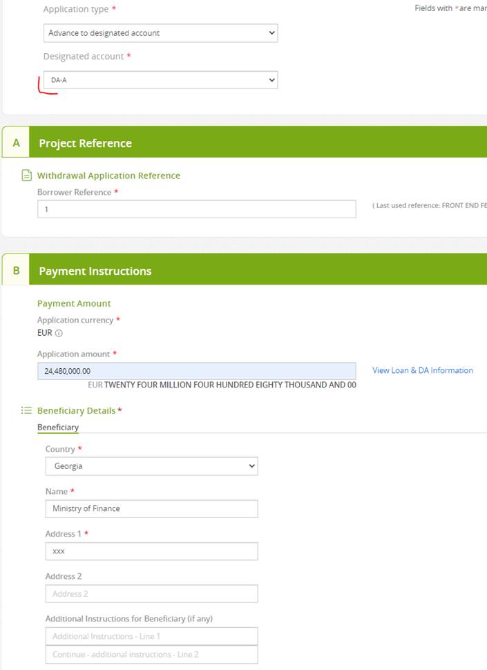 Section A - Withdrawal Application Reference/ Borrower reference – enter the info which will distinguish this application from any other. Usually it is: 1 , or DA-1. The application numbering is at your discretion…..