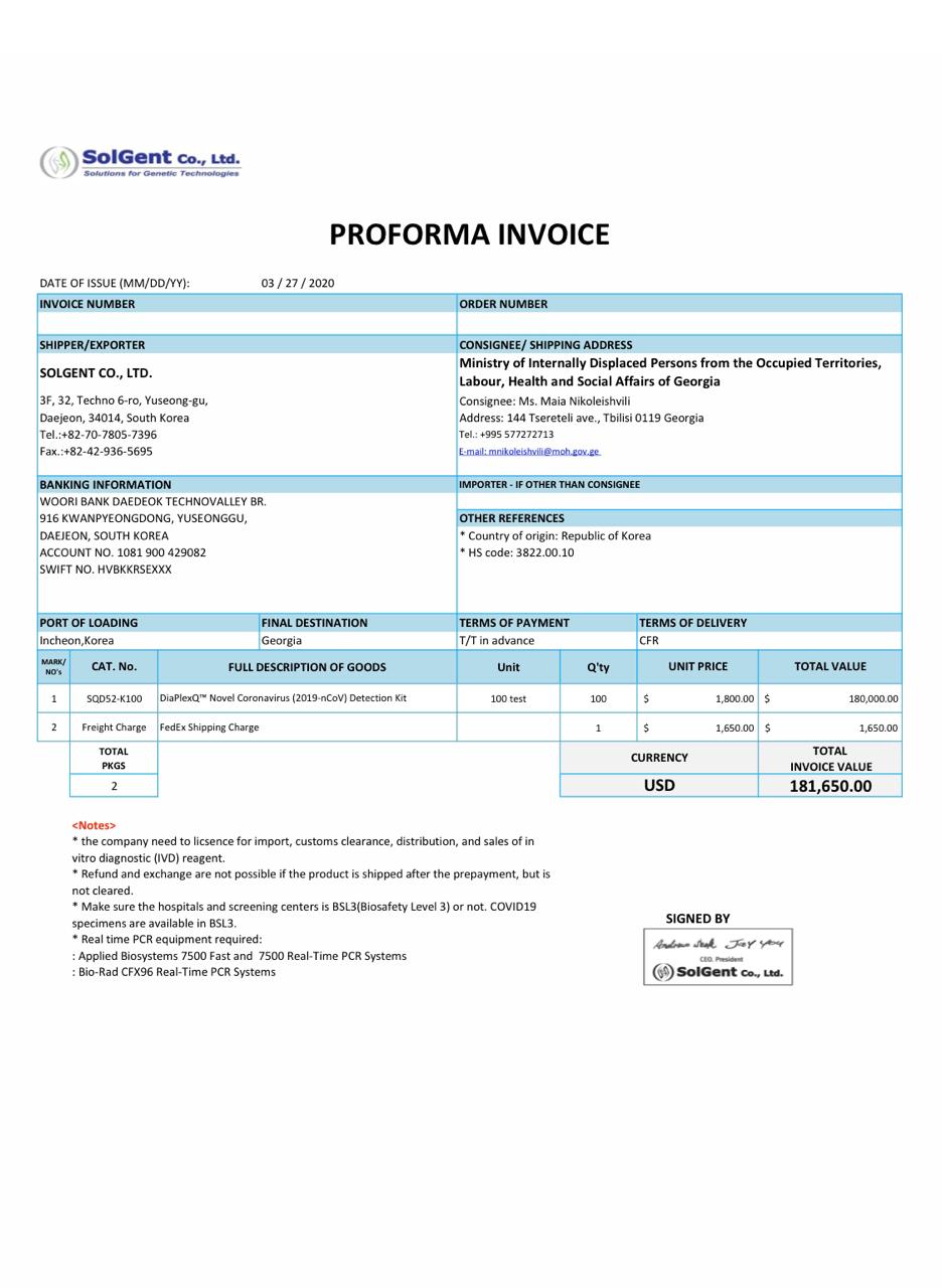 | Subject : | FW: კორეის პცრ და სწრაფი ტესტები |