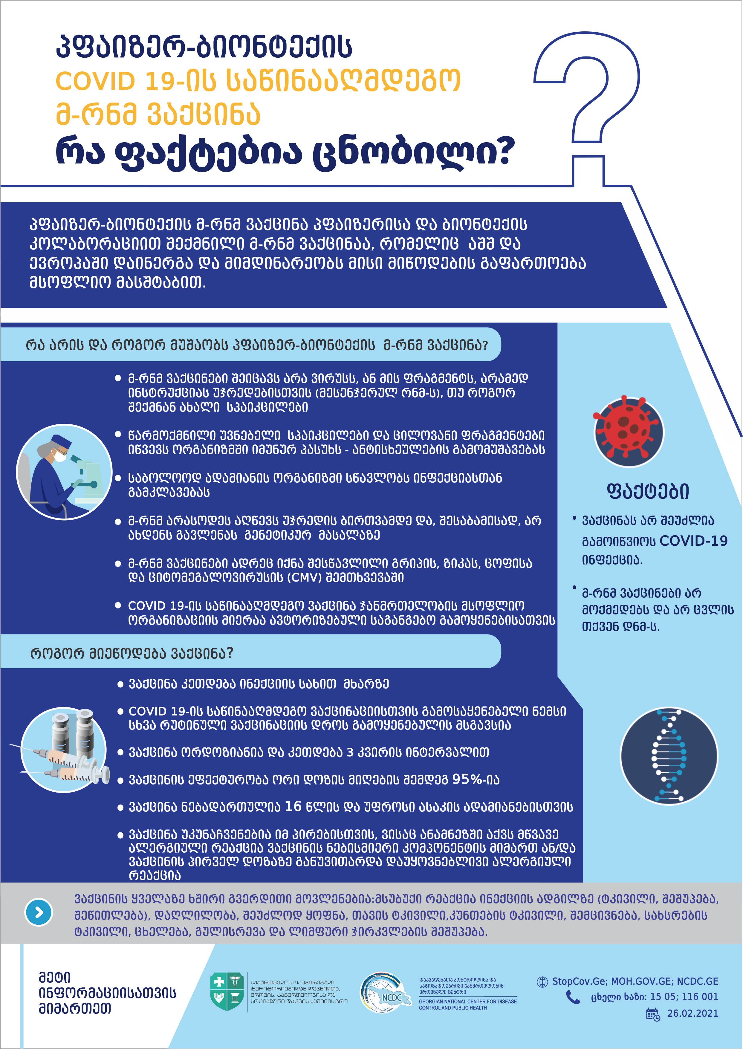 დამატებითი ინფორმაცია და მასალები იხ. ცენტრის ვებგვერდზე (ყველაფერი კოვიდ ვაქცინის შესახებ - https://www.ncdc.ge/#/home