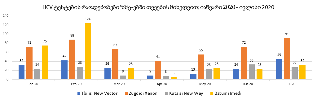 HCV ტესტირებების რაოდენობებს თვეების მიხედვით ზშც-ებში.