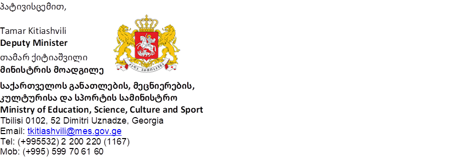 | From : | Tamar Kitiashvili <tkitiashvili@mes.gov.ge> |