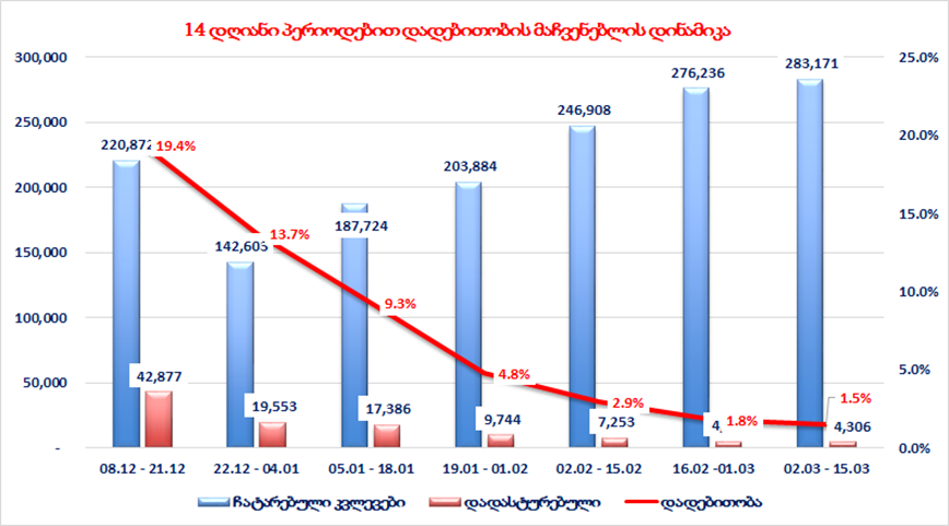 15 მარტი 20.227 ნიმუში. (საშუალოდ დღეში ბოლო ერთი თვის მანძილზე 19.638