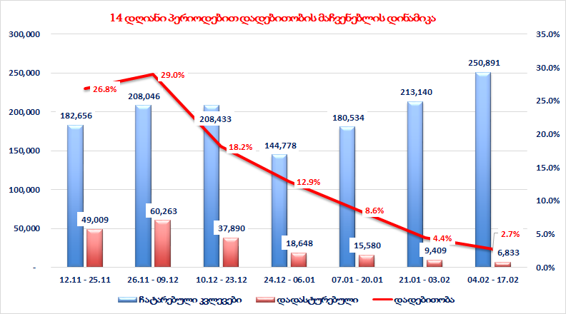 7-20 იანვრის განმავლობაში საშუალოდ დღეში აღებული იქნა 13.001 საკვლევი ნიმუში,