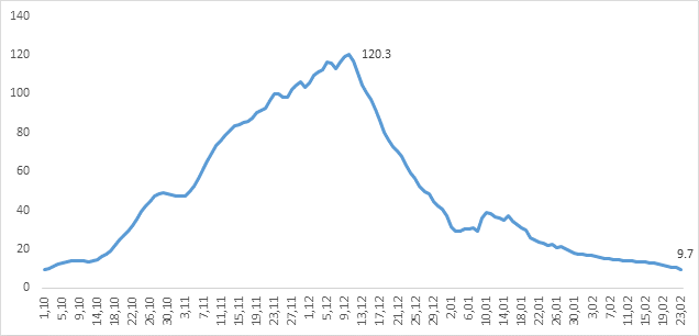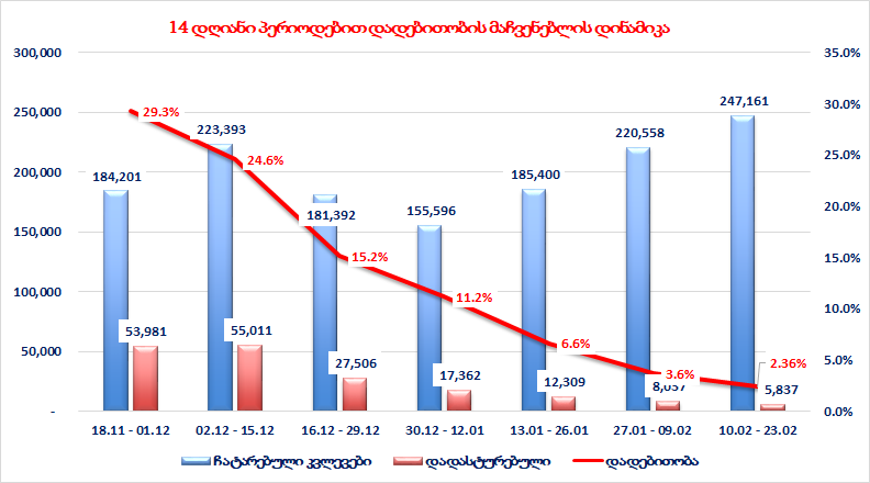 7 დღიანი დადებითობის მაჩვენებელი - 2.3 %