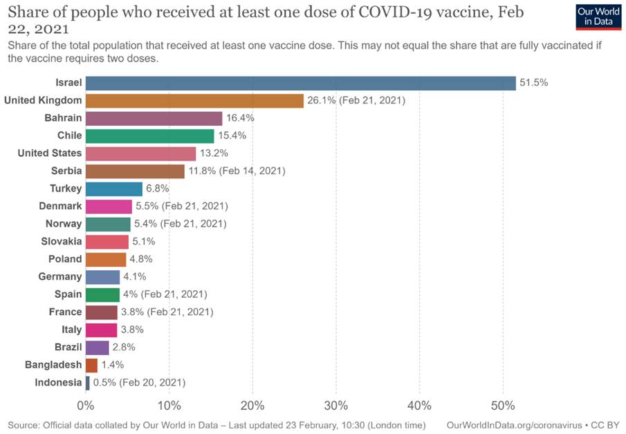 • UK has given the first dose of COVID-19 vaccine to 17.7 million people.