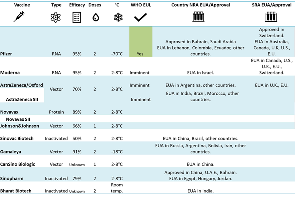 In follow-up to Friday’s meeting and as discussed, please find attached a status update of COVID-19 Vaccines within the WHO EUL/PQ evaluation process for info.