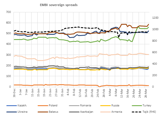 Real activity: PMI remained in growth territory and slightly strengthened in both Turkey and Poland in March.