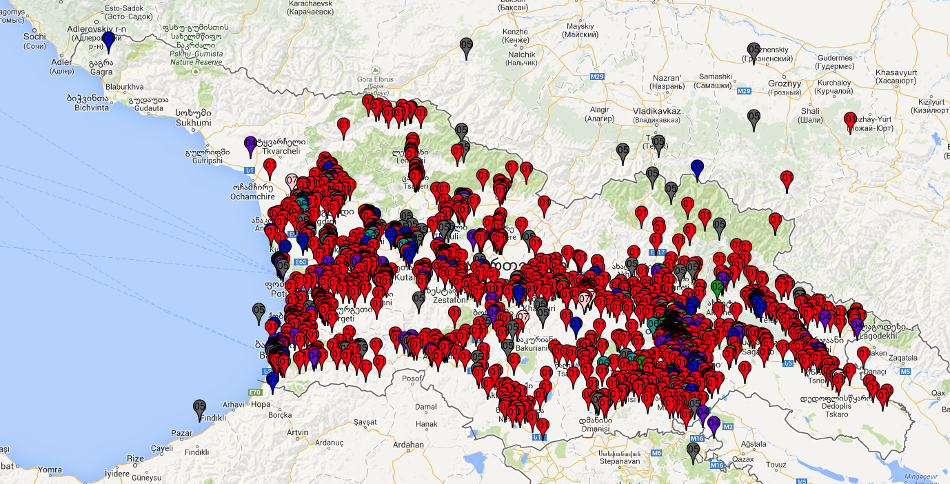 გიგზავნი რუკებს, რომლებიც ამოღებულია cloud.moh.gov.ge-დან. კოორდინატებს ირჩევენ თვითონ დაწესებულებები პასპორტიზაციის გავლისას და არასწორია ბევრის შემთხვევაში.