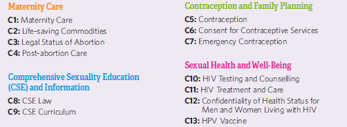 are broken down by SRHR area outlined below: