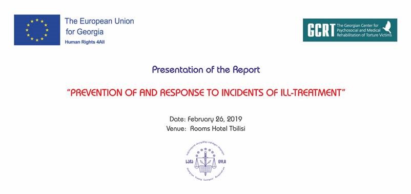 We are honored to invite you on the presentation of the report prepared by Georgian Young Lawyers’ Association (GYLA) - “PREVENTION OF AND RESPONSE TO INCIDENTS OF ILL-TREATMENT”.