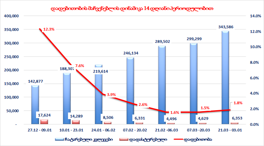 აპრილის დადებითობის მაჩვენებელი - 2.5 %