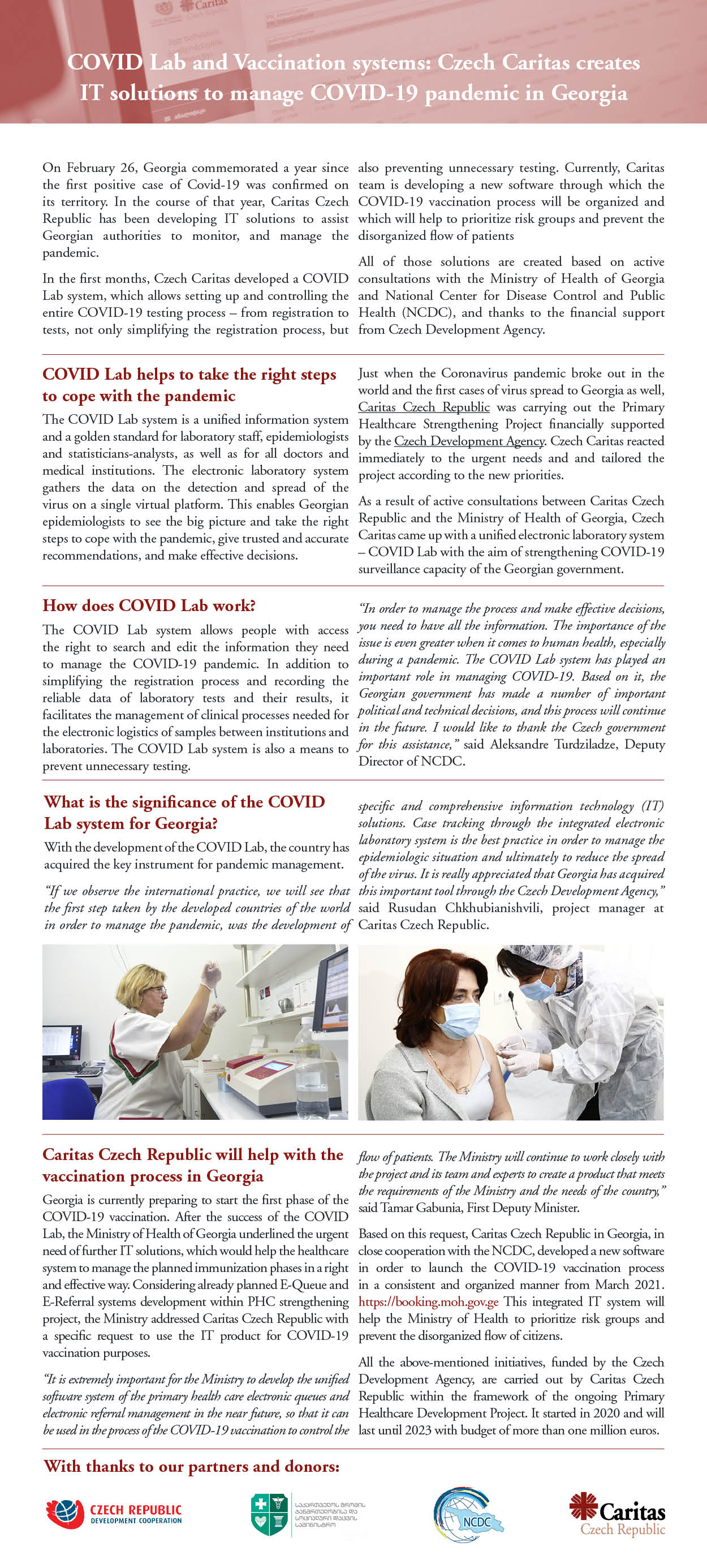 | Subject : | Czech Caritas creates IT solutions to manage COVID-19 pandemic in Georgia |