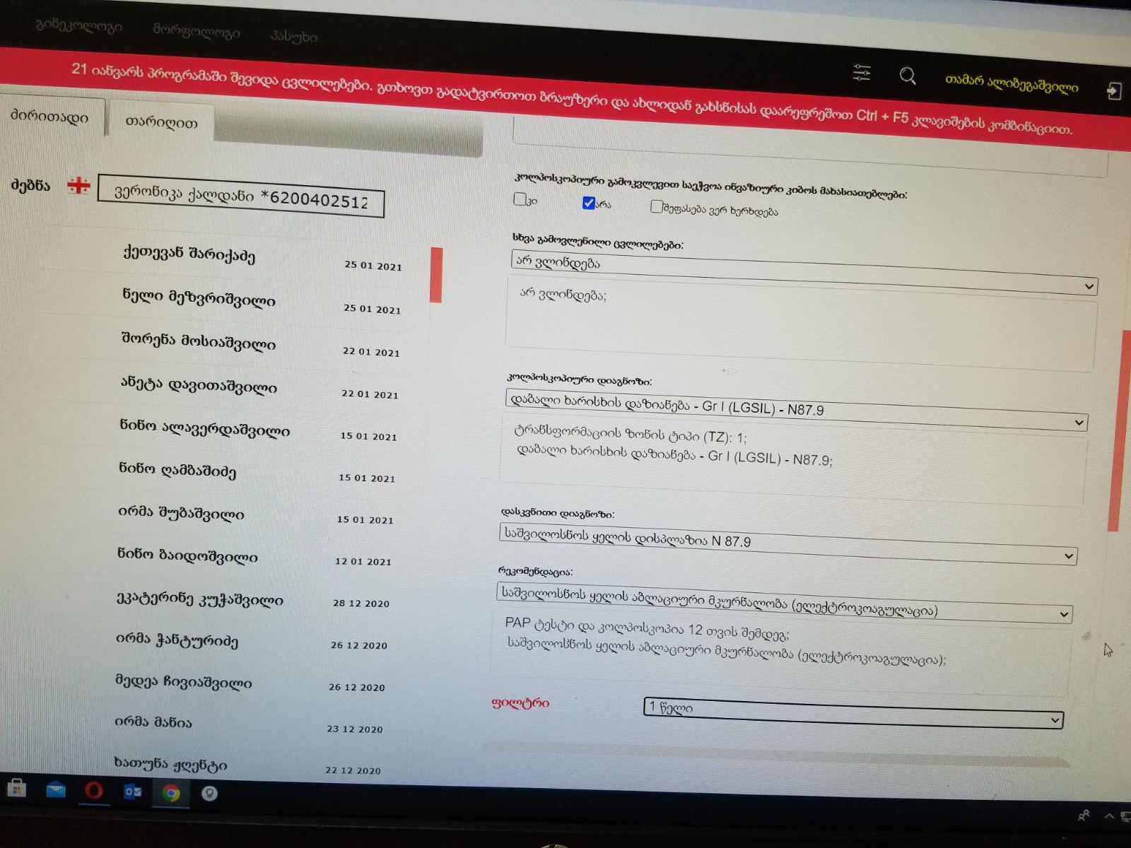 ზურა ეს ის პაციენტია კოლპოსკოპია რომ ვერ არეგისტრირებდა: