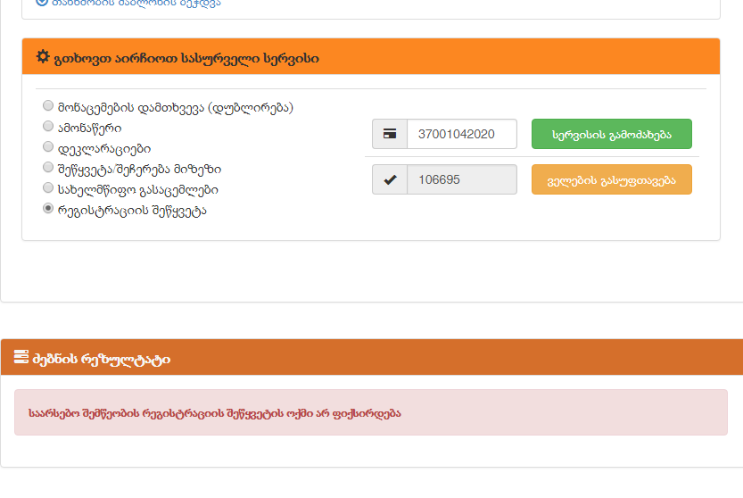 "რეგისტრაციის შეწყვეტის" სერვისის გამოძახებისას აწერს შემდეგს: "საარსებო შემწეობის რეგისტრაციის შეწყვეტის ოქმი არ ფიქსირდება". იხილეთ ფაილი.