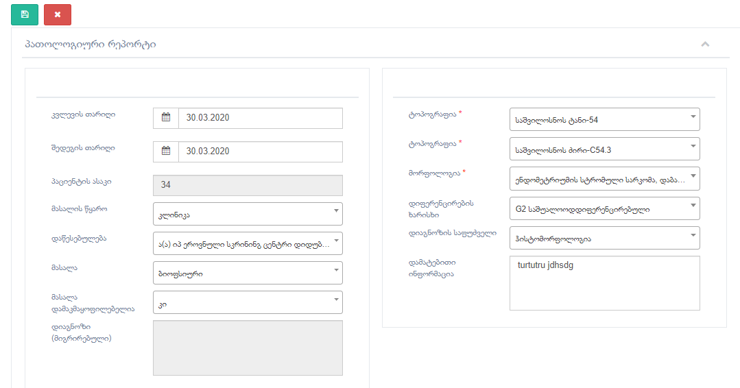 ამისთვის უნდა გაასწოროთ თქვენს მხარეს ის ვალიდაციები რაც ხელს უშლიდა მონაცემების ჩაყრას, ჩვენ ჩავხსნით ვალიდაციას მხოლოდ პათოლოგიურ რეპორტზე და თავიდან გამოუშვებთ მონაცემს.