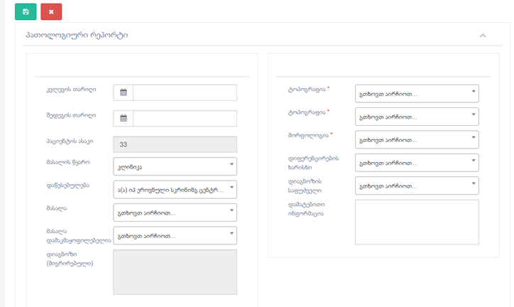პათოლოგიური რეპორტის ატვირთვა არ ხდებოდა ამ პროგრამიდან, მე დავამეტე, მაგრამ ატვირთვის დროს აბრუნებდა შეცდომას.