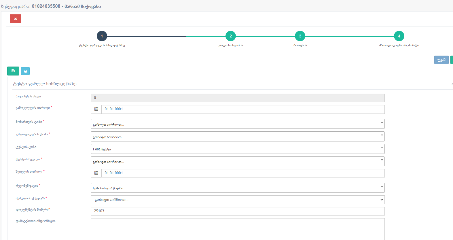 მოგესალმებით,ზურა 2019 წლის ქეისია და არავალიდური თარიღებია შეტანილი ,არც შედეგია დაფიქსირებული, ამიტომ მე წაგიშლითOn Thu, Oct 22, 2020 at 1:21 PM Zurab Batiashvili <ZBatiashvili@moh.gov.ge> wrote:მოგესალმებით,