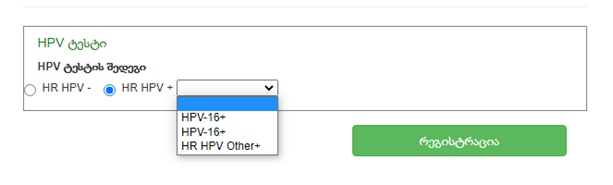თუ მოინიშნა HPV ტესტი (მისამართდება), ლაბორანტს გამოუჩნდება:
