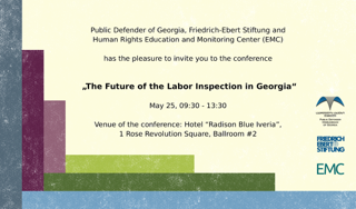 მსურს მოგიწვიოთ კონფერენციაზე  „შრომის ინსპექციის მომავალი საქართველოში“ მისასალმებელი სიტყვით რომ სულ მცირე ხანს მაინც მობრძანდეთ? საქართველოს სახალხო დამცველი, ფრიდრიხ ებერტის ფონდი და ადამიანის უფლებების სწავლებისა და მონიტორინგის ცენტრი (EMC) ვაწყობთ კონფერენციას 25 მაისს  09:30 – 13:30 ღონისძიების ადგილი: სასტუმრო „რედისონ ბლუ ივერია“, 1, ვარდების რევოლუციის მოედანი, Ballroom #2