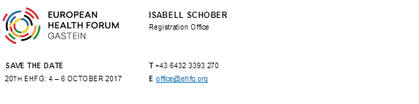Forum Gastein Health in all Politics – a Better Future for Europe which is to be held in Bad Hofgastein, Austria on 4-6 October ,2017.