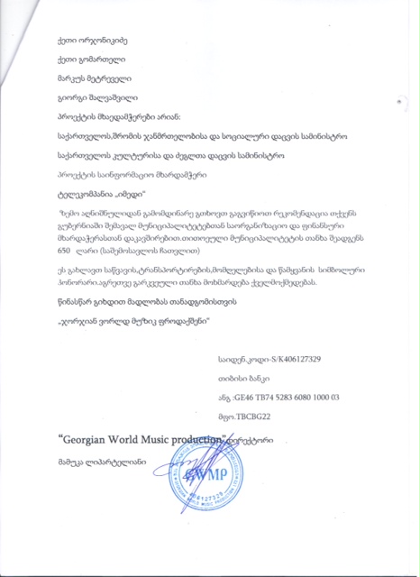 From: Georgian Wordl Music Production [mailto:gwm.producion@gmail.com]