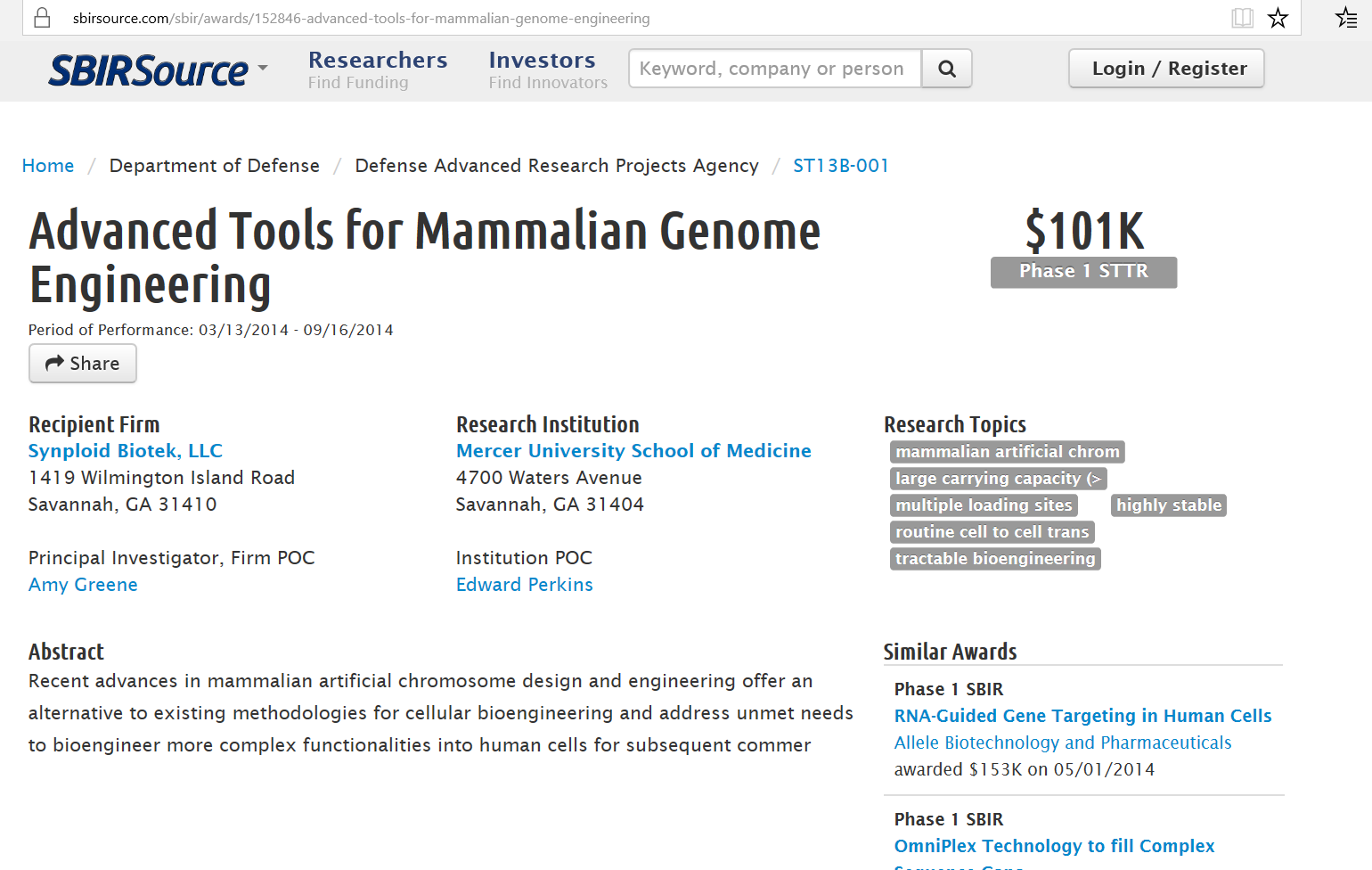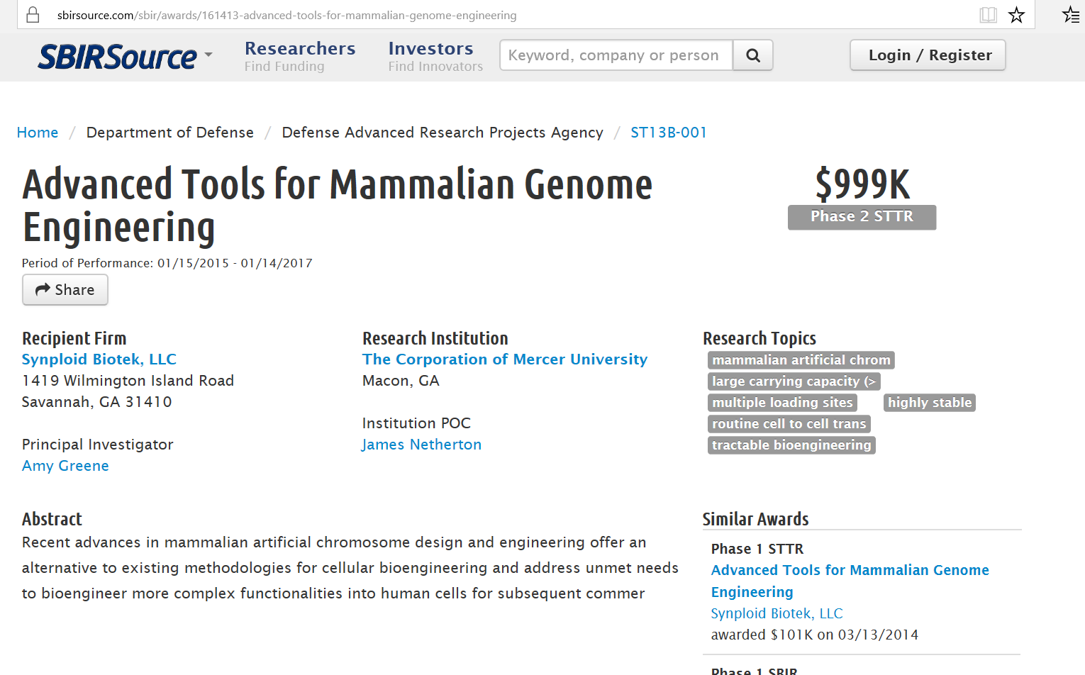 Index of /Biological Weapons/Georgia. MoH. Lugar Research Center/2018/Secret Documents/DARPA-Human Genome Engineering
