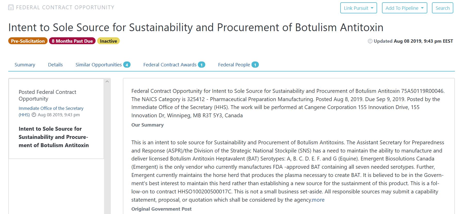 [   ]Intent to Sole Source for Sustainability and Procurement of Botulism Antitoxin 75A50119R00046 - GovTribe.pdf2020-06-04 03:36 57K
