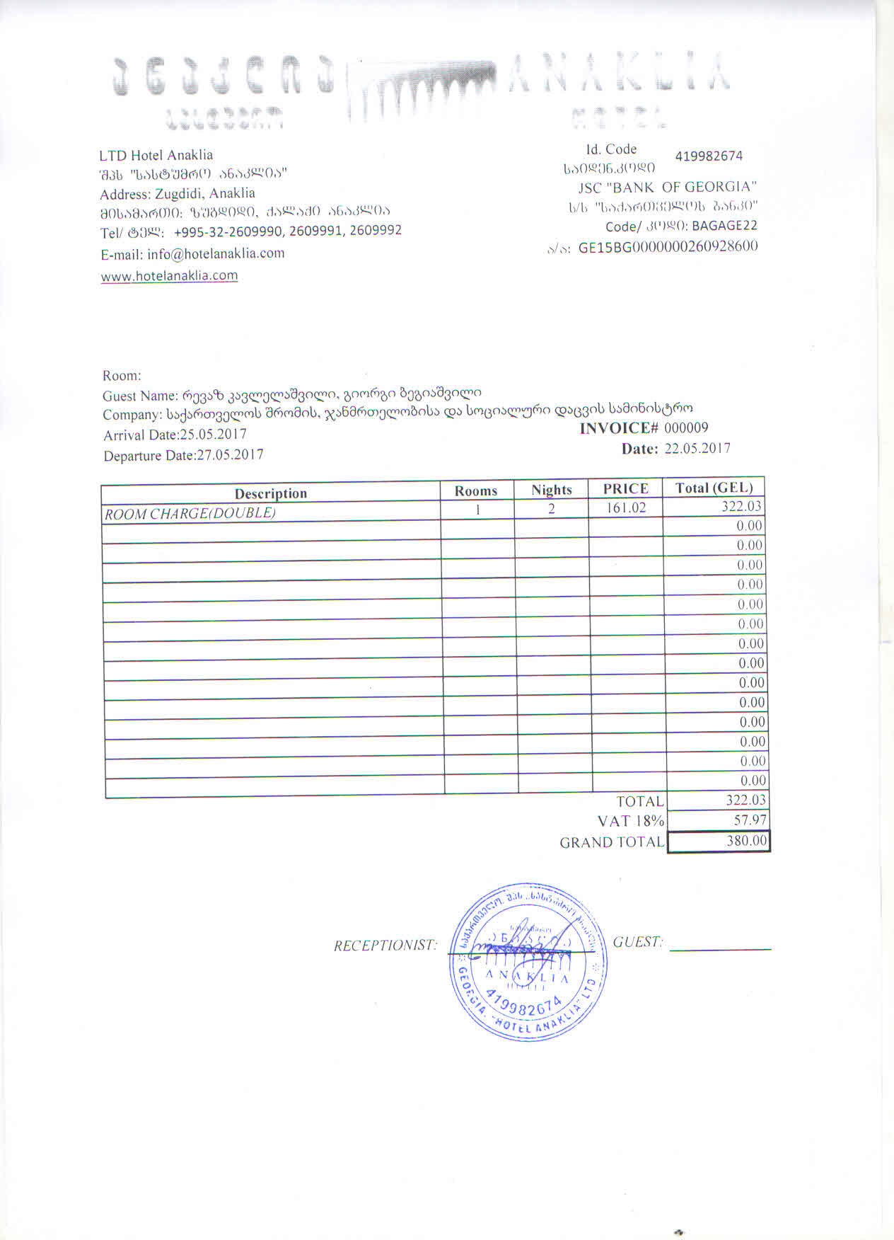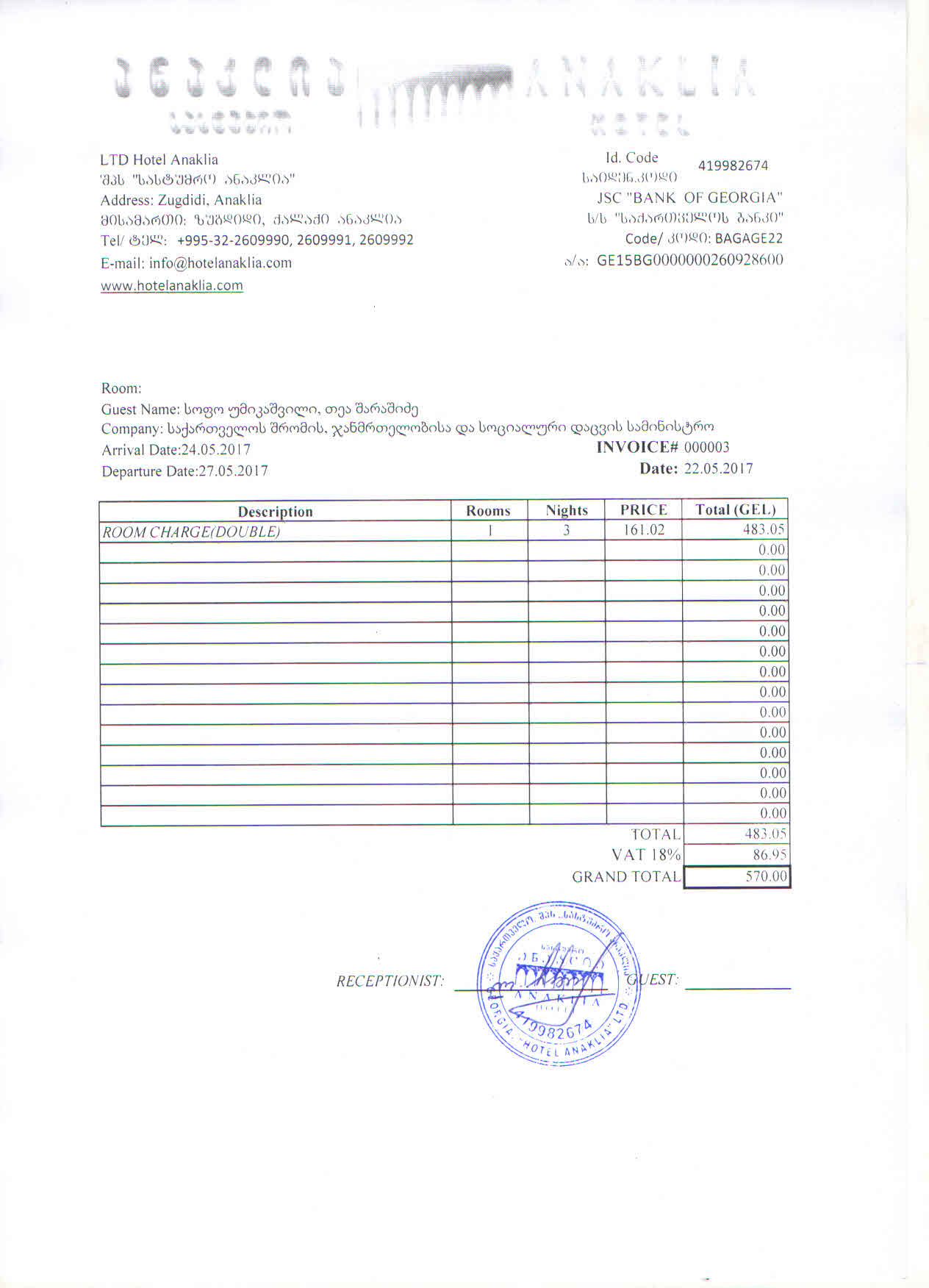 | Subject : | სასტუმროს ინვოისი (ანაკლია) |