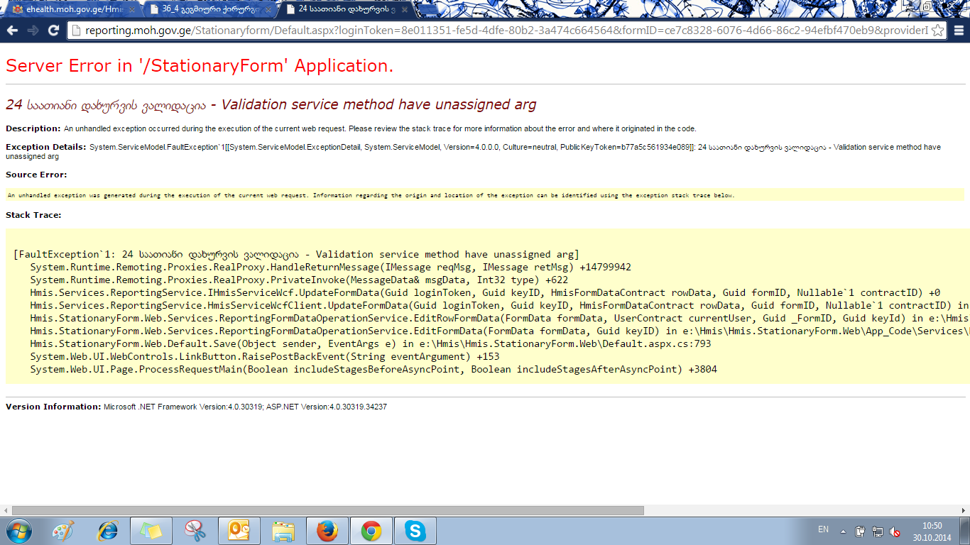 კლინიკა (ს/კ406055879) ანგარიშგებაში უკან დაბრუნებული რეესტრის (36_4 - გადმოგზავნის თარიღი 16.07.2014) შემთხვევაზე (შ/ნ 1248219701) რომ შედის თანხების გასასწორებლად და ინახავს შემთხვევას გამოდის ერორი. გთხოვთ გაასწოროთ.