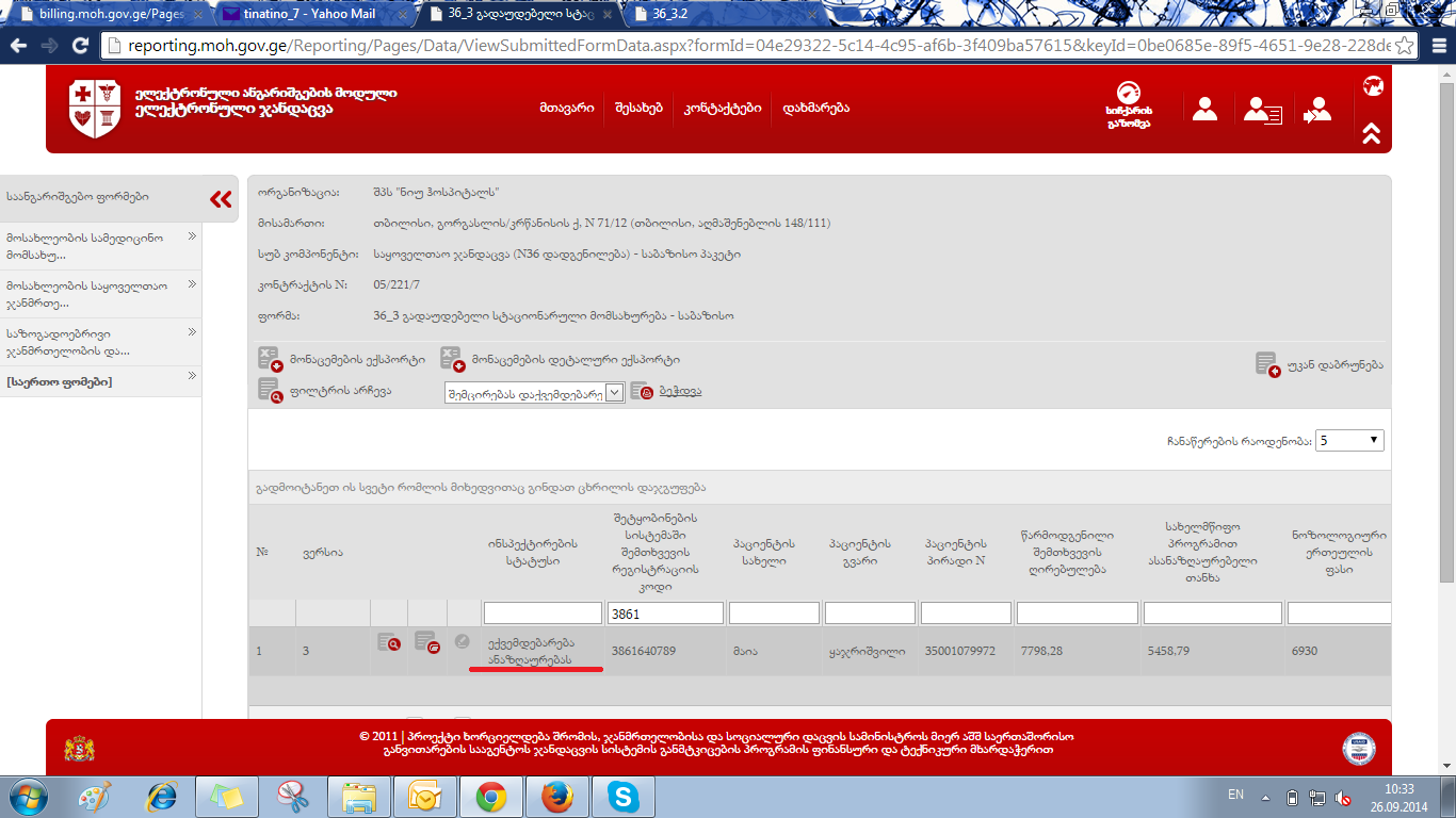 ანგარიშგების მოდულში უკვე დამუშავებულ რეესტრებზე კლინიკებს არ უჩანთ შემთხვევის სტატუსი