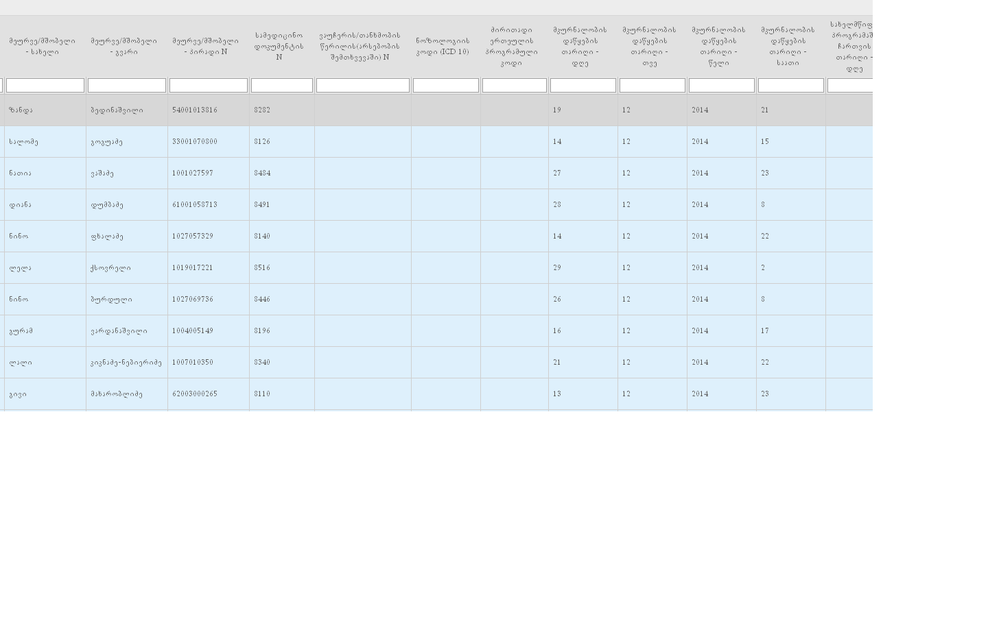 1. აღნიშნულ ფორმაში ICD 10 -ის ველები ცარიელია, ყველა შემთხვევა ვალიდურია.