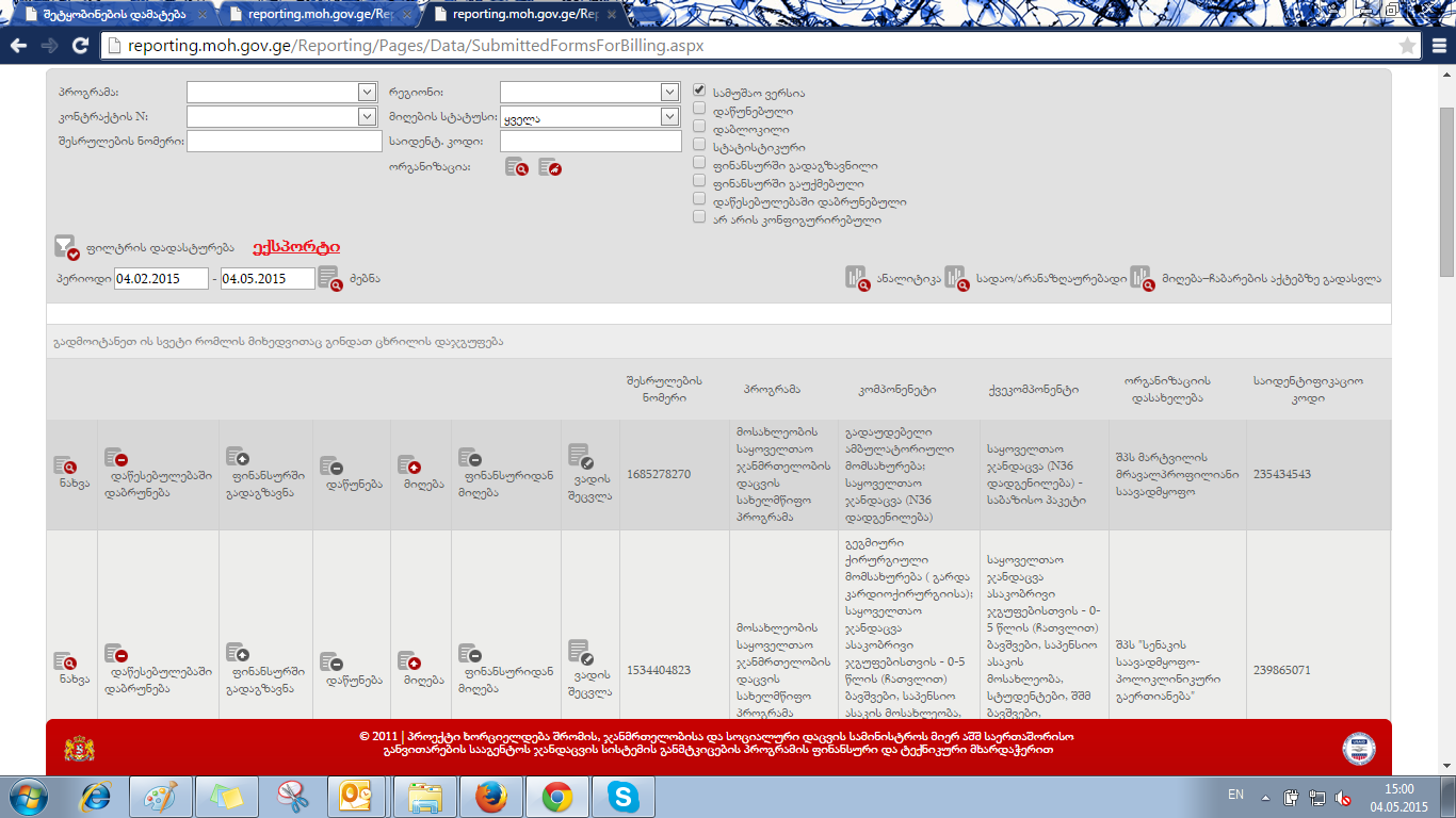 თუ შეიძლება რეპორტინგს SSA-ს მხარეს რომ ქონდეს ექსპორტი და ექსელის ფაილში გადმოდიოდეს ყველა ის მონაცემი რაც ინტერფეისზე ჩანს.