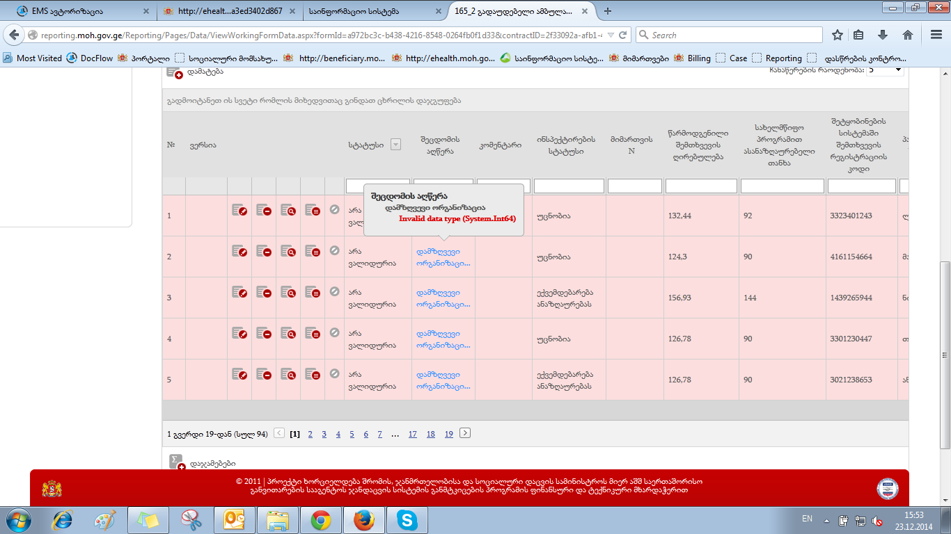 კლინიკამ (ს/კ 215119182) სრული ვალიდაცია გადაატარა ფორმაზე 165_2. და მთლიანი შესრულება არავალიდურია, არავალიდურობის მიზეზი: დამზღვევი ორგანიზაცია.