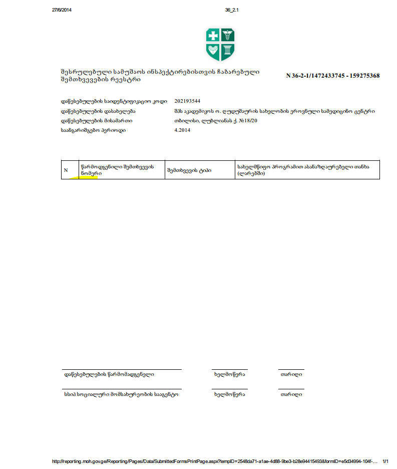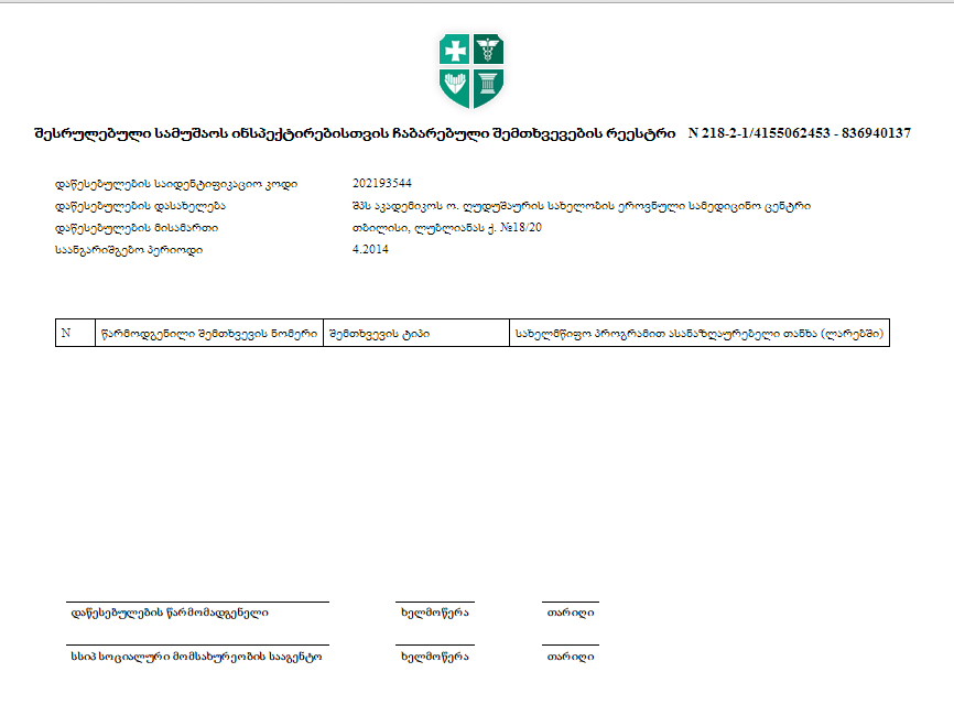 | Subject : | უწყისები |