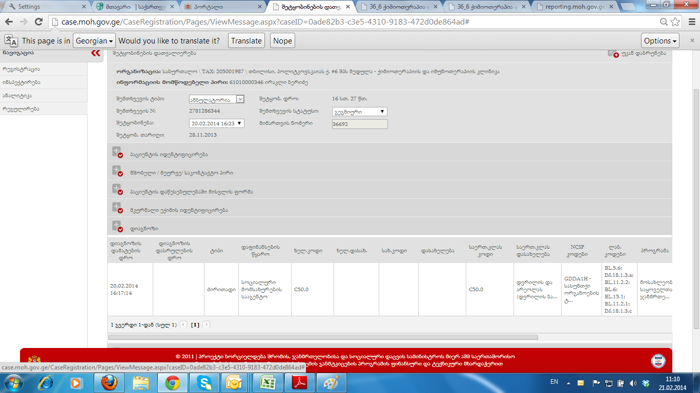 | Subject : | ქეისიდან სტაცფორმაში არ მოაქვს ლაბორატოიული კოდები |