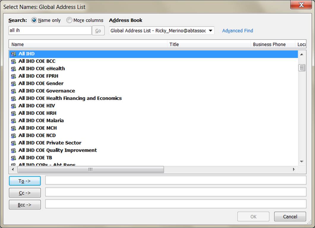 | Subject : | Changes to All IHD Email Lists in Outlook |
