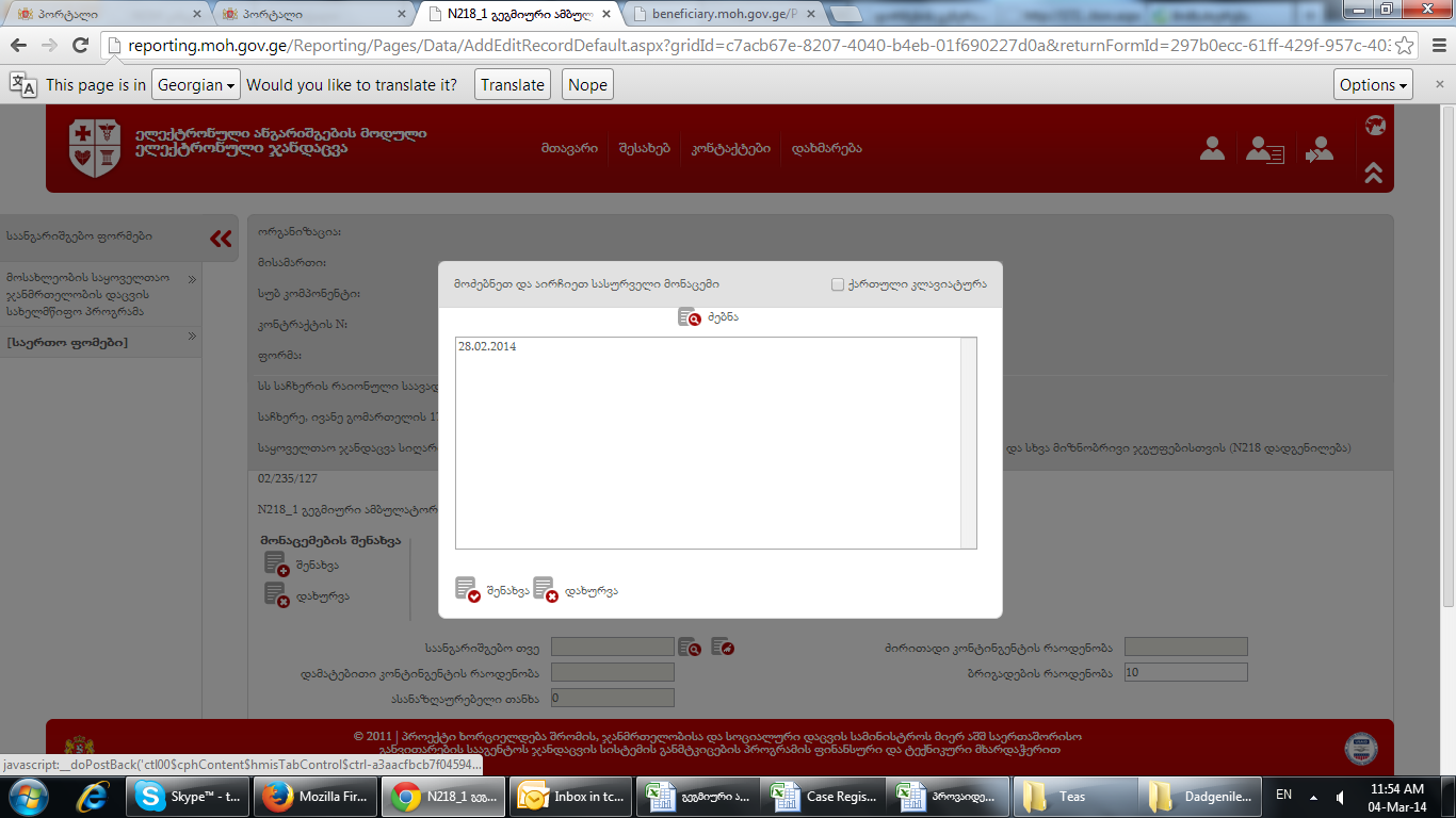 დამიკავშირდა სს საჩხერის რაიონული საავადმყოფო-პოლიკლინიკური გაერთიანების წარმომადგენელი. იანვრის თვის 218_1 გეგმიური ამბულატორიული მომსახურება კაპიტაცია აქვს დაბრუნებული. რედაქტირებისას საანგარიშგებო თარიღის არჩევისას ფიქსირდება მხოლოდ 28.02.2014. გამქრალია იანვარი. გთხოვ, დაგვეხმარო პრობლემის მოგვარებაში