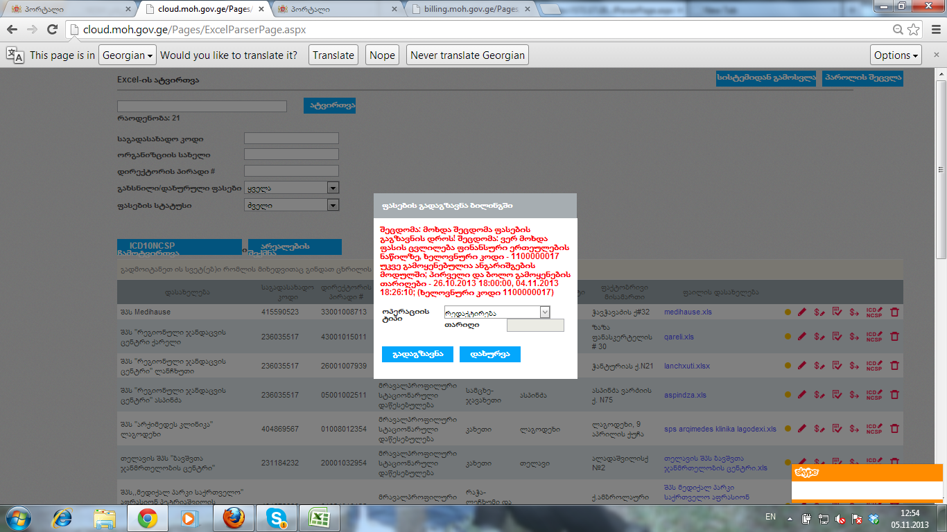 5.გადაუდებელი ქირურგიისა და ტრავმატოლოგიის ცენტრზე ამოაგდო ერორი და შემდეგ ვნახეთ რომ კონკრეტული კოდის ფასი გადაგზავნილი იყო ფინანსურში და კლინიკას გადასაგზავნის სტატუსიც მოეხსნა.