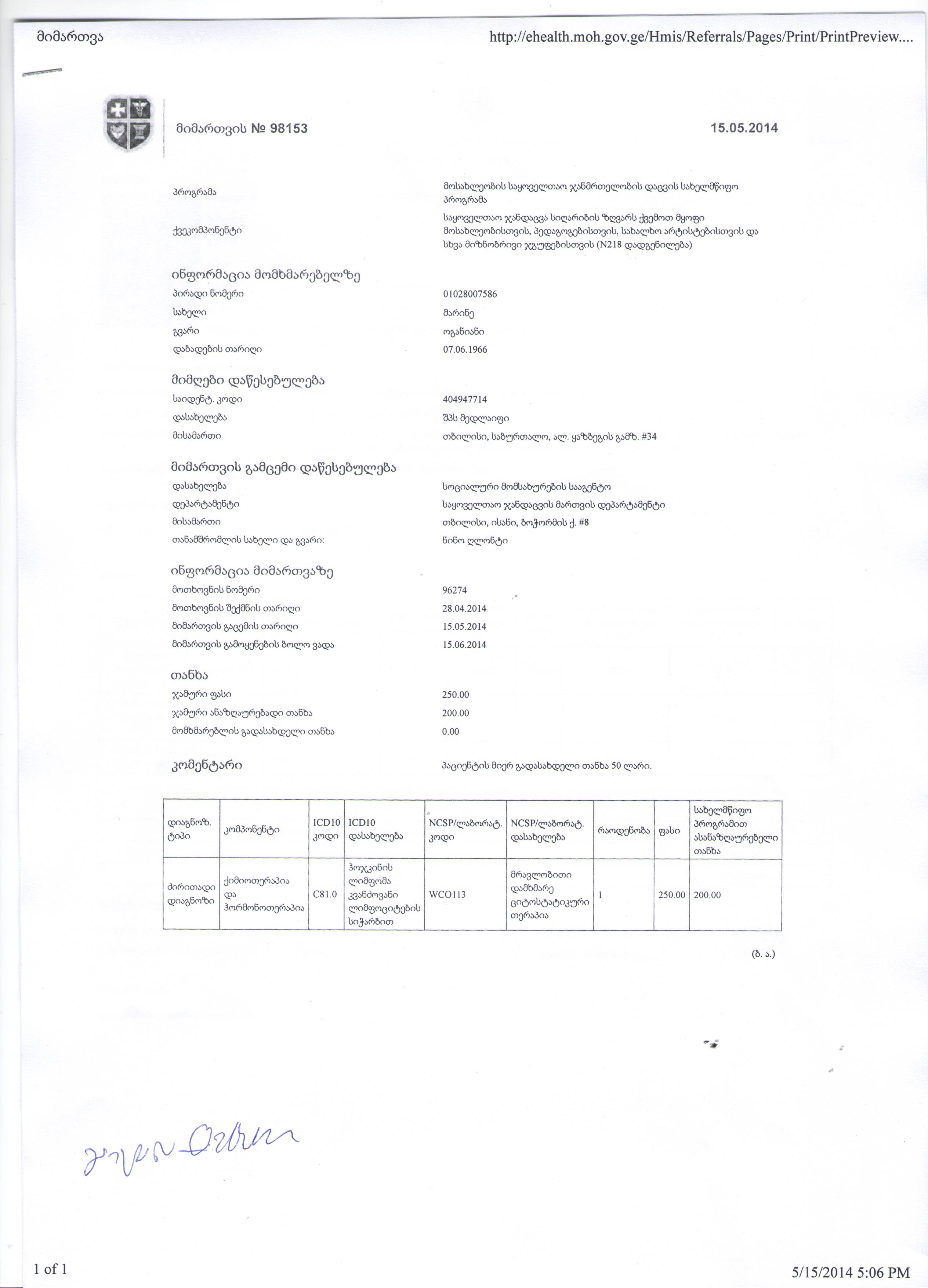 | To : | Nana_Gvatua@hssp.org.ge; SRostiashvili@hssp.org.ge; tkobakhidze@hssp.org.ge; Konstantine_Muradov@hssp.org.ge; Nivanauri@hssp.org.ge; Vano Goliadze <vaniko@moh.gov.ge> |