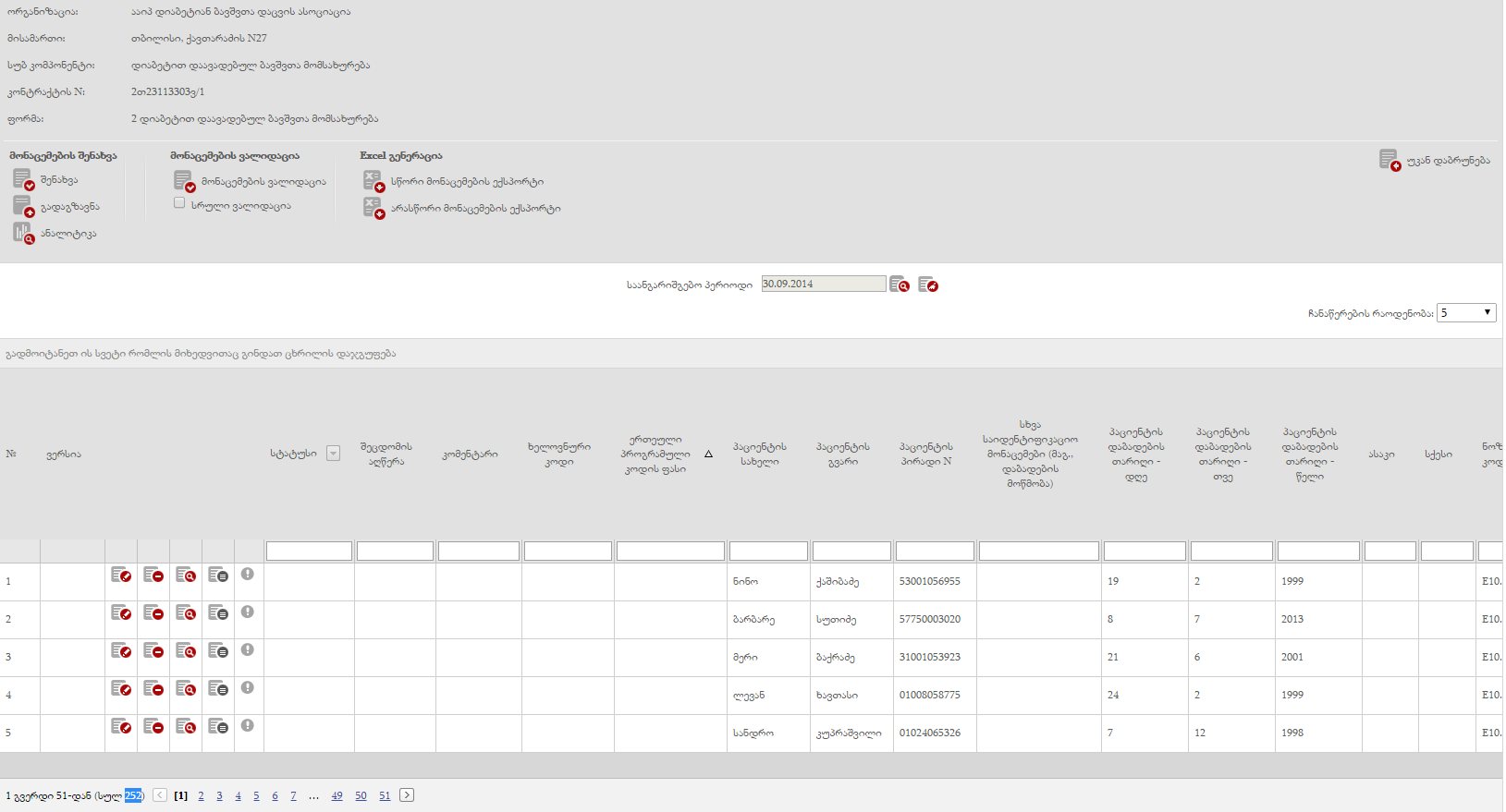 გარეთა ველში ყველა ბენეფიციარის გასწვრივ მითითებულია რეგისტრაციის თარიღი 12.09.2014. რედაქტირების ღილაკით შესვლისას, პაციენტის აღრიცხვაზე აყვანის თარიღად დაფიქსირებულია ასევე 12.09.2014, თუმცა დაწესებულება განმარტავს, რომ ბენეფიციარების აღრიცხვაზე აყვანის თარიღად 12.09.2014 არ მიუთითებიათ