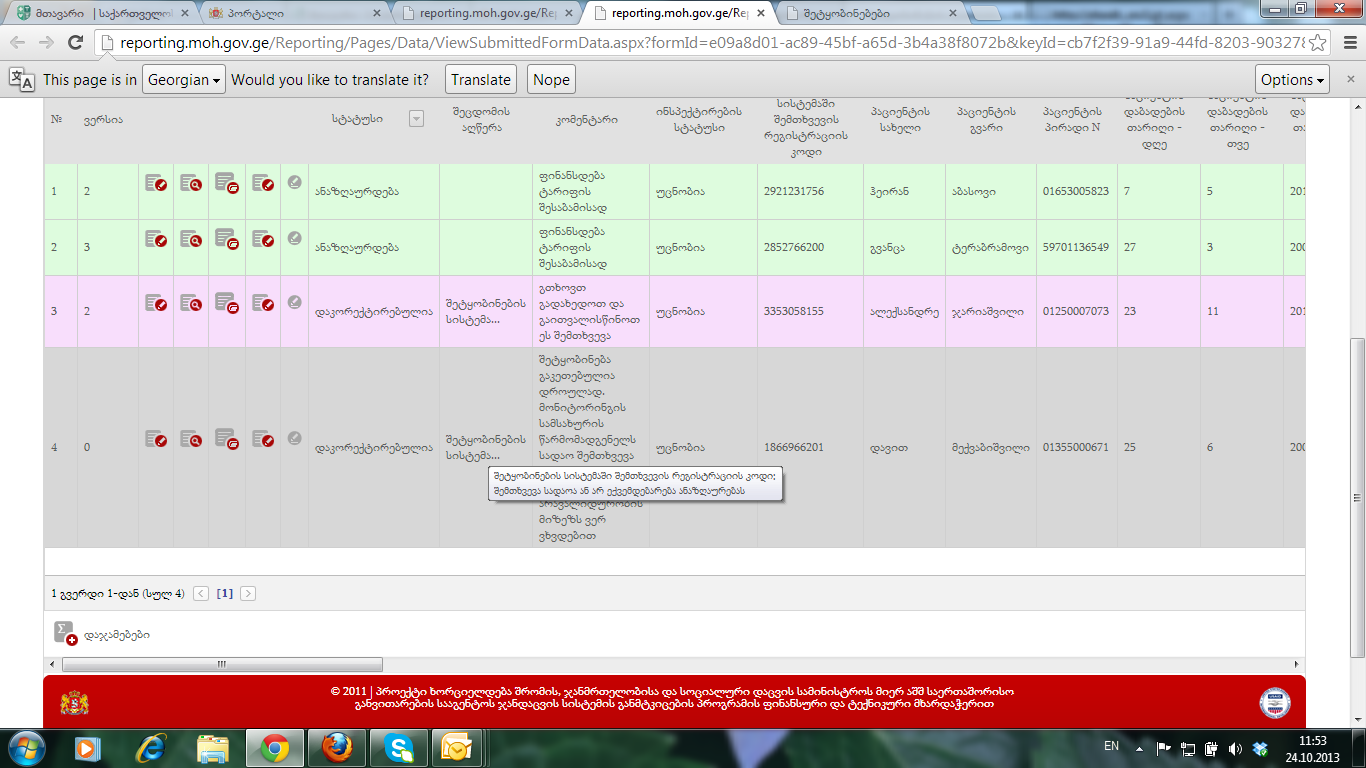 ამ შემთხვევაზე ინსპექტირება დასრულდა 2013-09-04 10:54:11 - ზე და შეიძლება შემთხვევა უფრო ადრე აქვს დამატებული ანგარიშგებაში