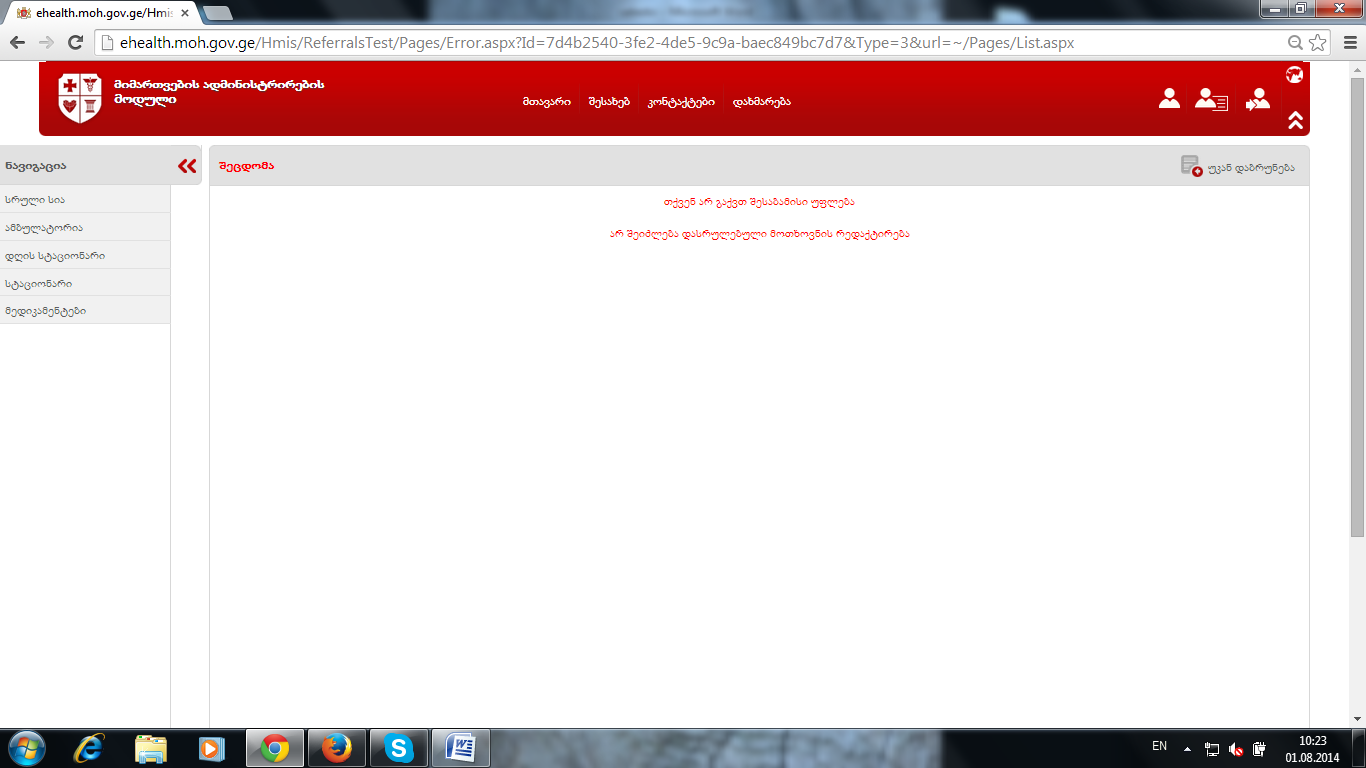 1.    მიმართვის უარყოფა გავაკეთე,გამოდის შეტყობინება-იხილეთ ბმული 1.გამოვდივარ  მიმართვიდან და გარედან მიმართვა უარყოფილია-ბმული 2. ასევე არ არის უარყოფის შემთხვევაში შეტყობინების გაგზავნის ღილაკი- ბმული 3.