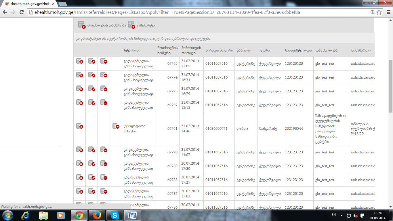 2.       შექმენით მოთხოვნა 22 წუთში ფორმა  და 22 კალკულაცია, ოღონდ ფანჯარა არ დახუროთ , ანუ შეინახეთ მიმართვა დატოვეთ გვერდი და 22(ან მეტი) წუთში გააგრძელეთ მუშაობა.