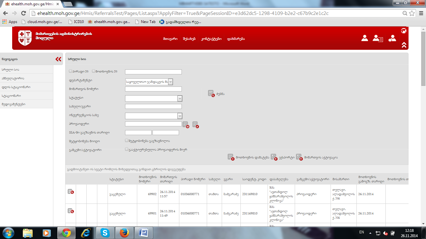 7.საერთო სიაში ყველა ჩანაწერზე გამოტანა თუ ვის მიერ არის გააცემული/გააქტიურებული მიმართვა- მუშაობს