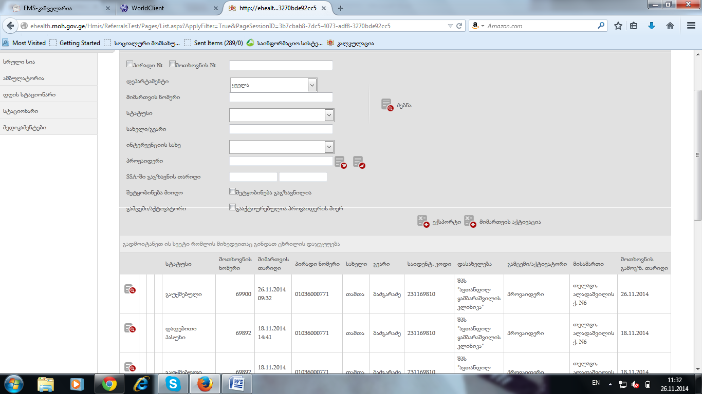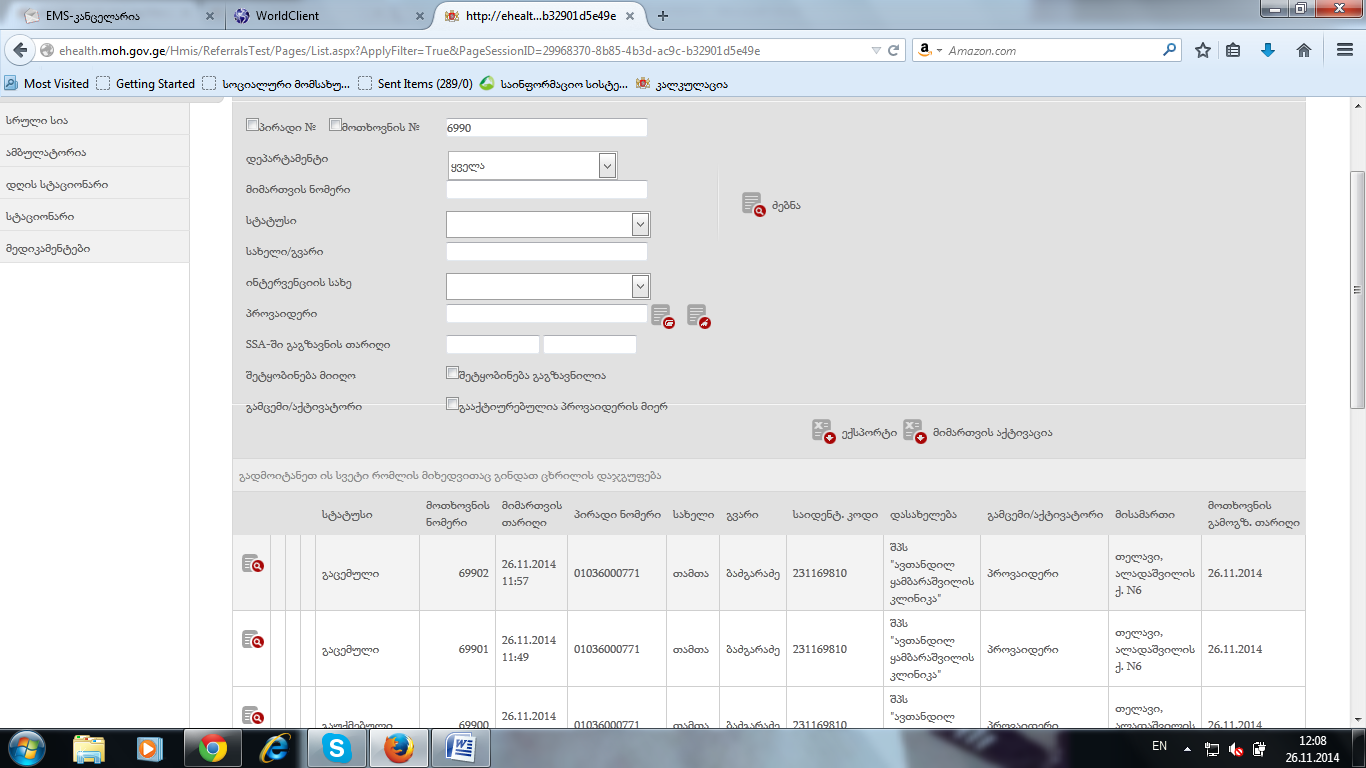 გავაუქმე მიმართვა და ჩანს კლინიკის მხარეს. ბმული