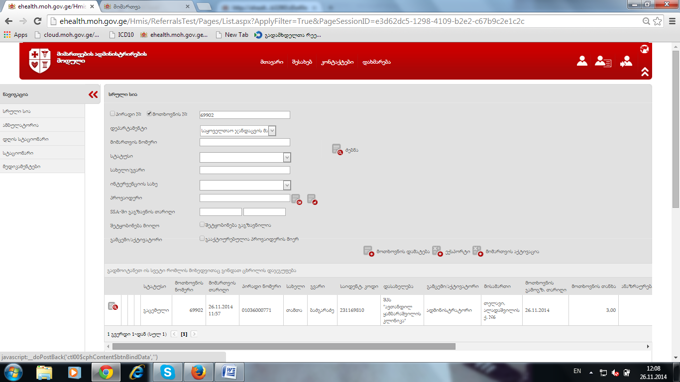 3.      მიმართვა არ ამოიბეჭდოს მანამ ს ნამ  არ მოხდება მიმართვის გაცემა.
